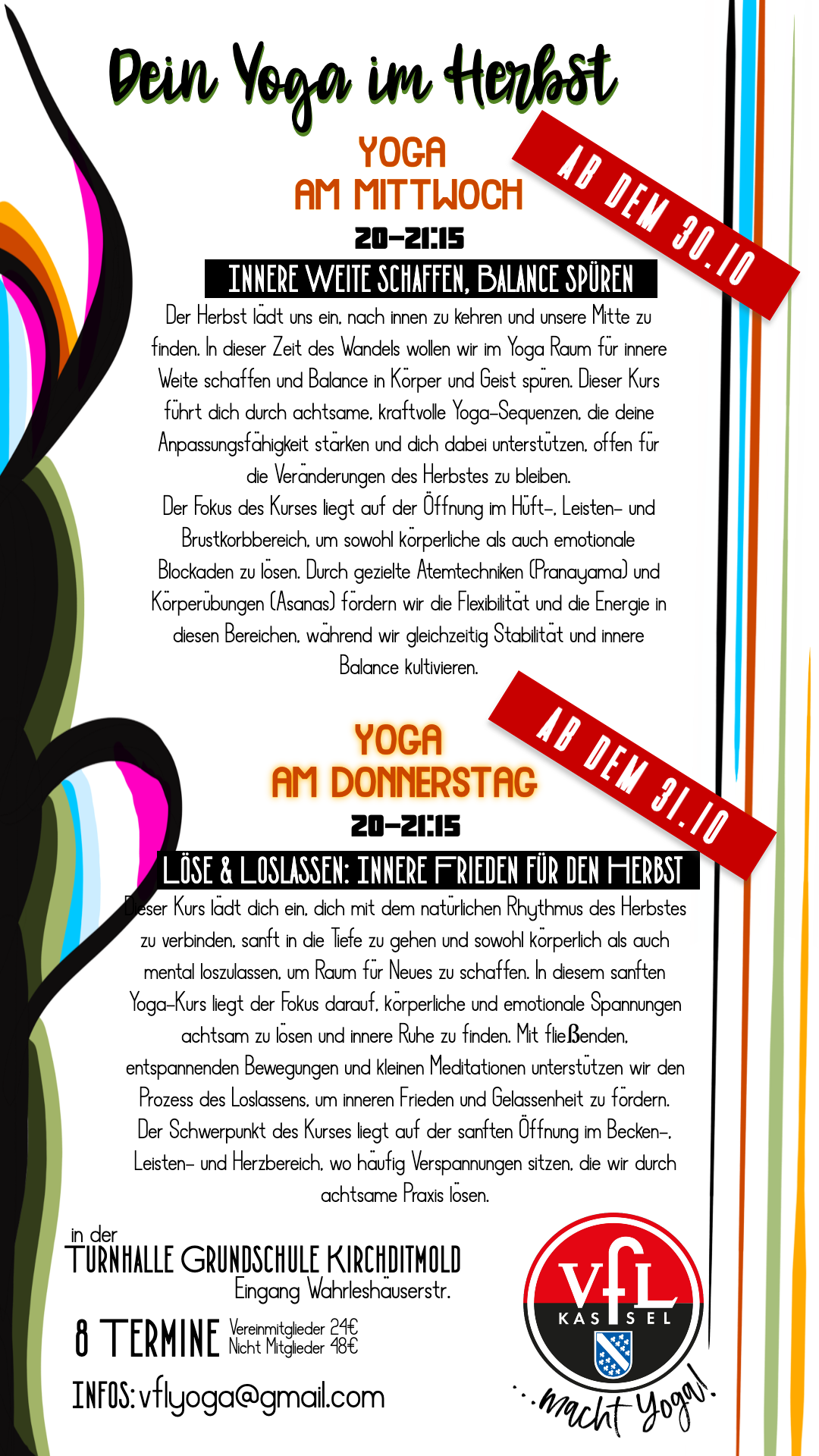 Ich freue mich die 2 Kurse beim VFL weiterführen zu dürfen und Euch durch den Herbst zu begleiten.